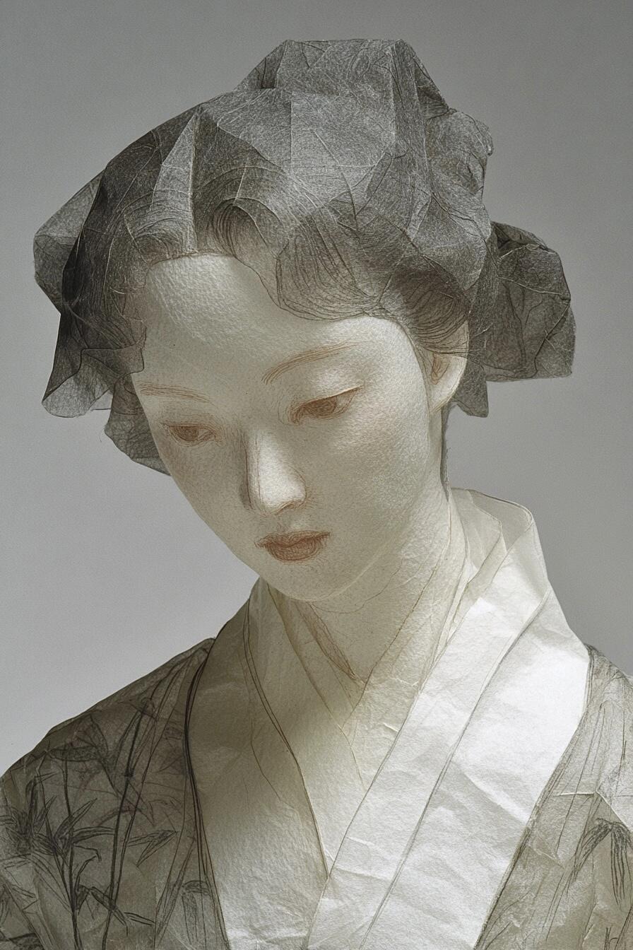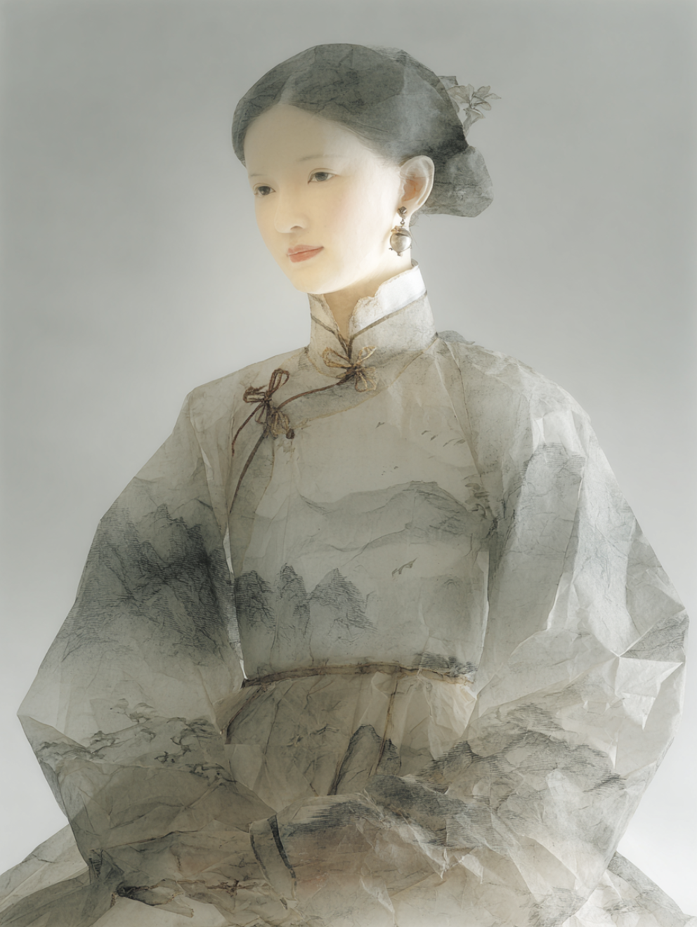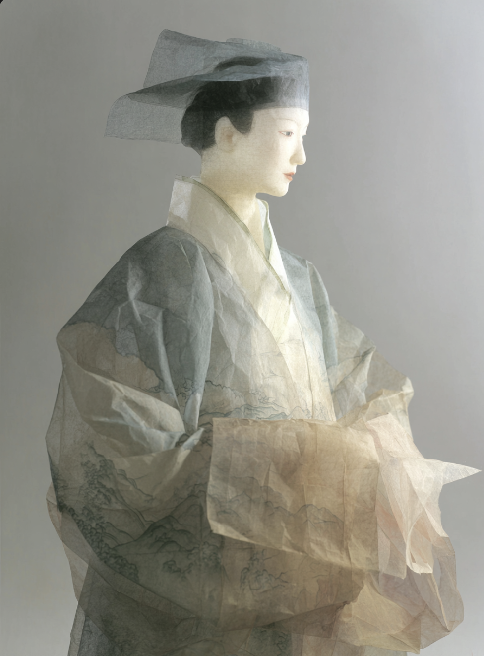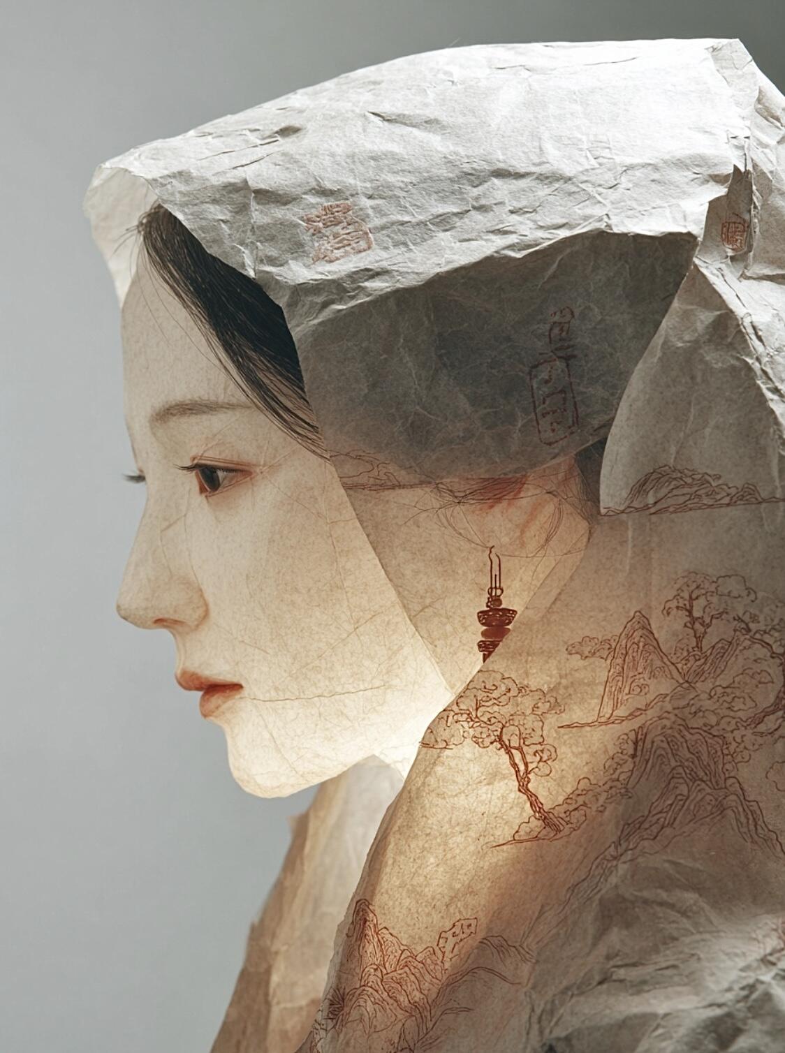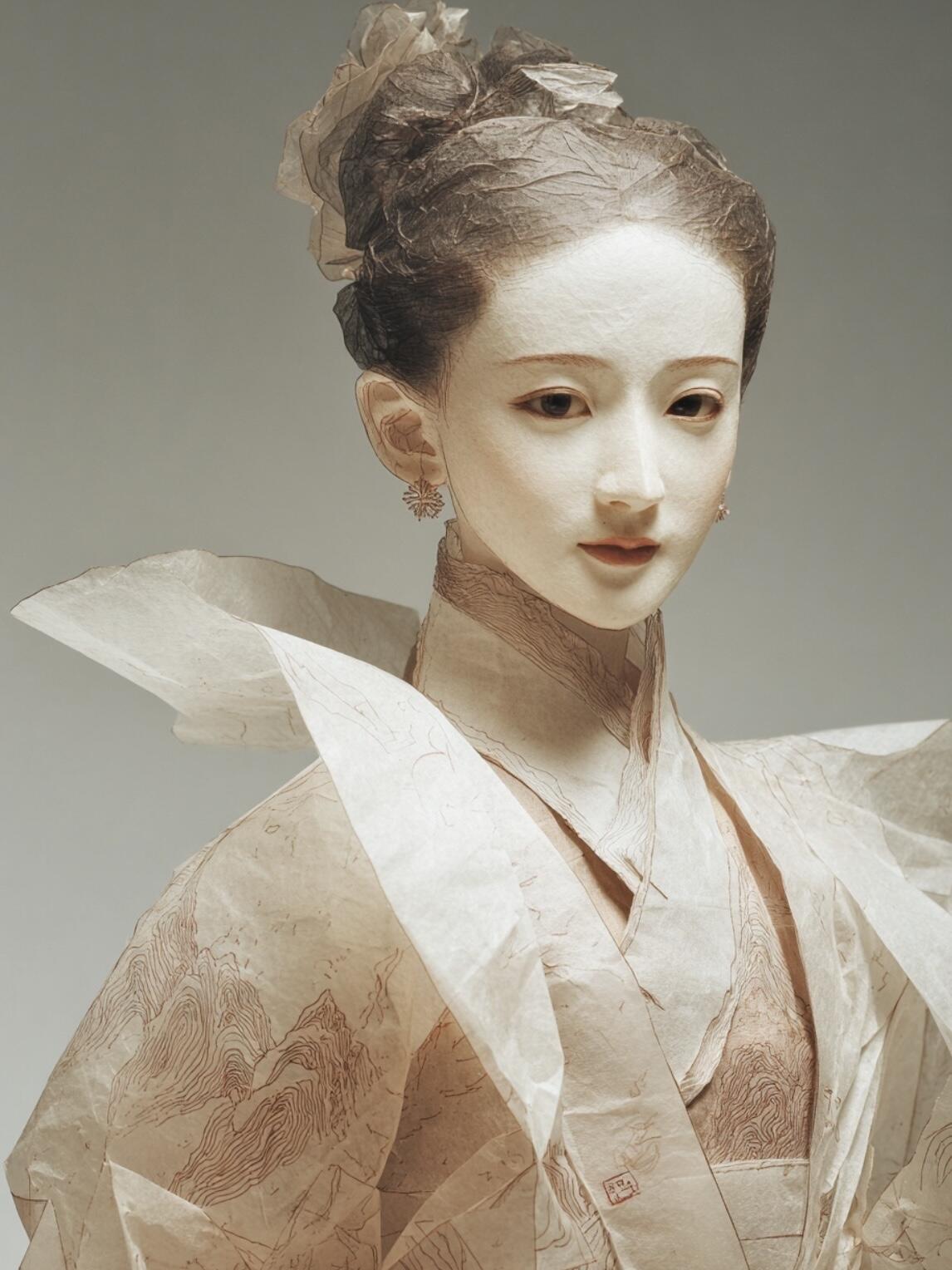 This series explores how AI can transcend the physical limitations of traditional crafts. I use “xuan-paper sculpture” as a speculative medium—delicate figures formed from ultra-thin, hollow rice paper that could never exist in reality. By merging Chinese classical aesthetics with computational imagination, the works demonstrate the potential of AI to expand the visual boundaries of material-based artistry.