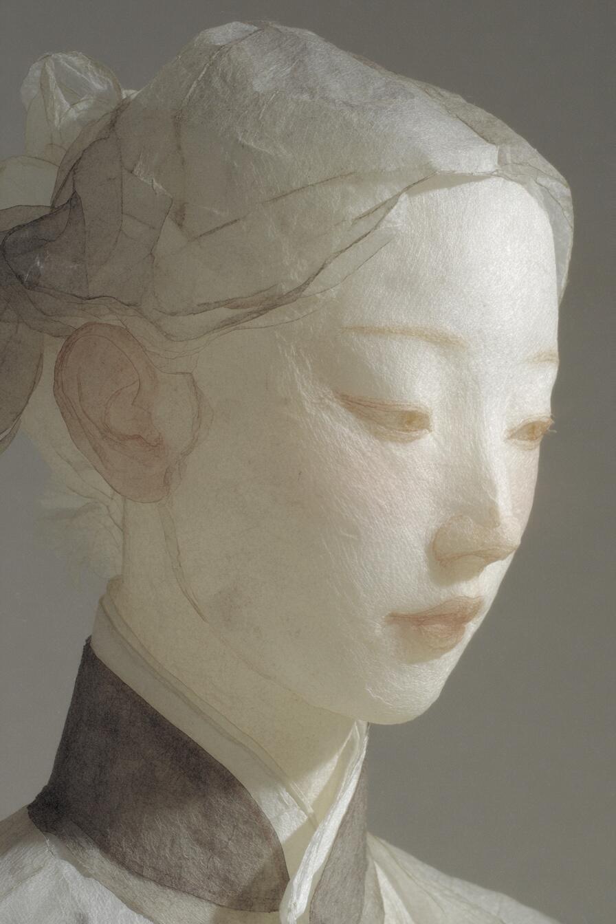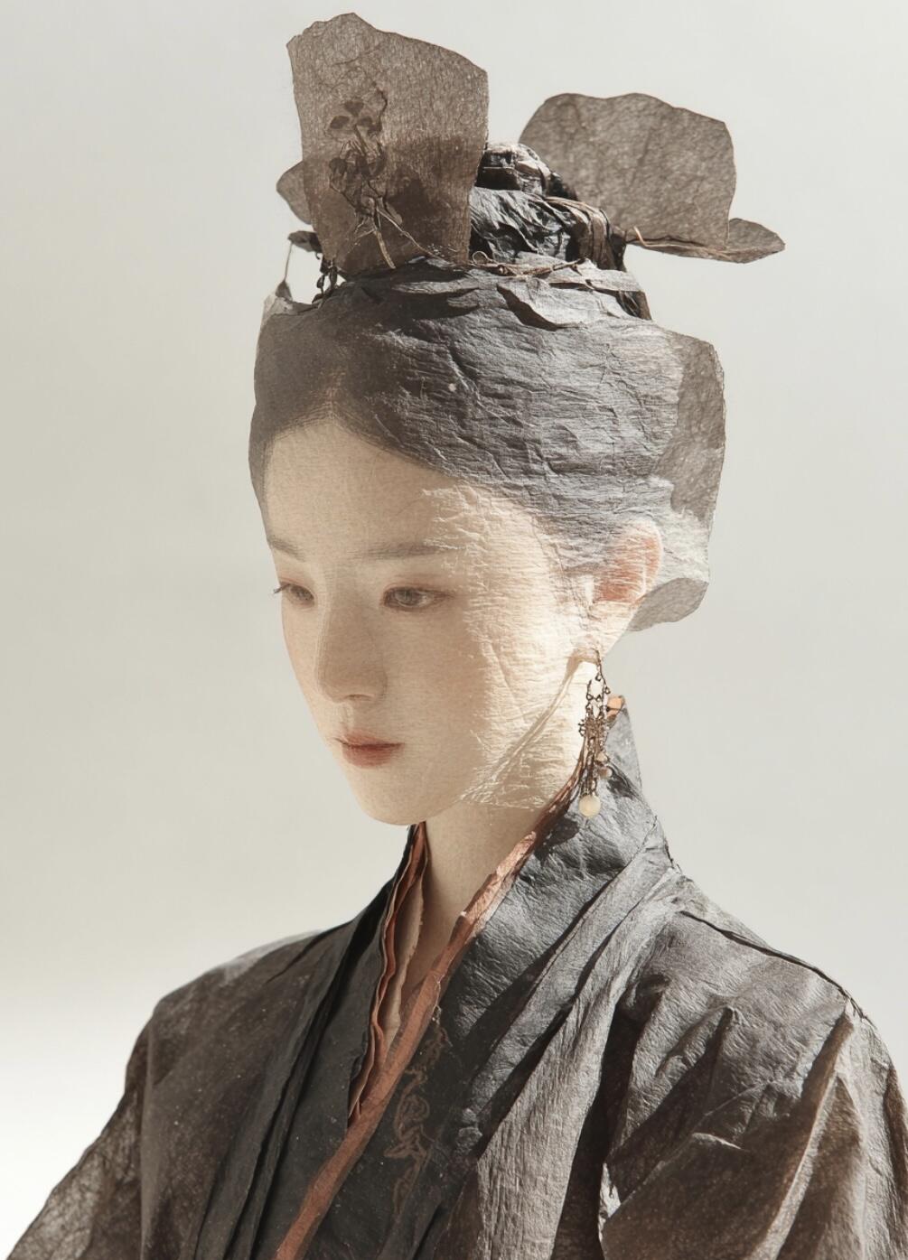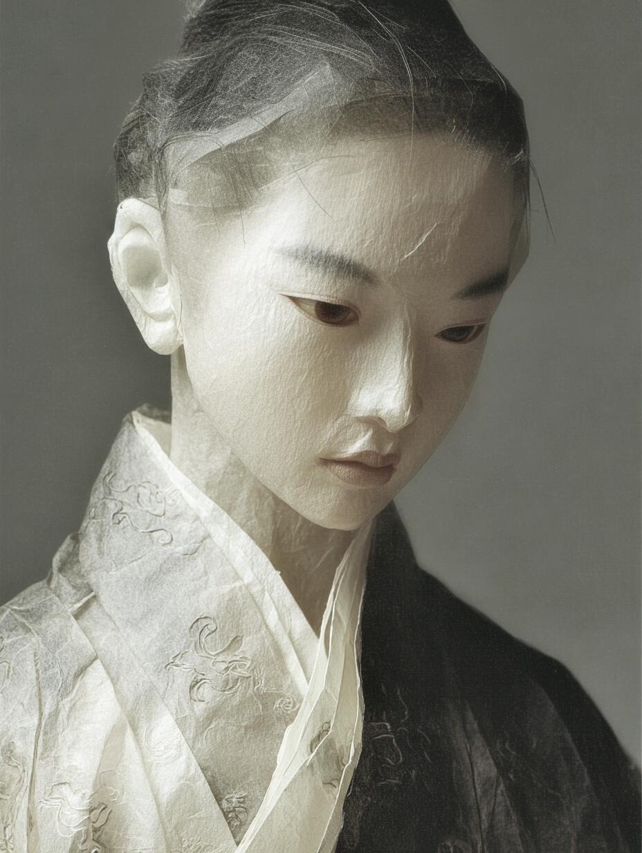 Plain paper is cut into Song-style robes, each fold concealing the passage of time. Cloud-like hairpins entwine a dream of a thousand years, while flowing sleeves trail mist and fragrance of the ancients.