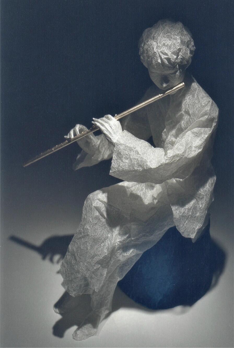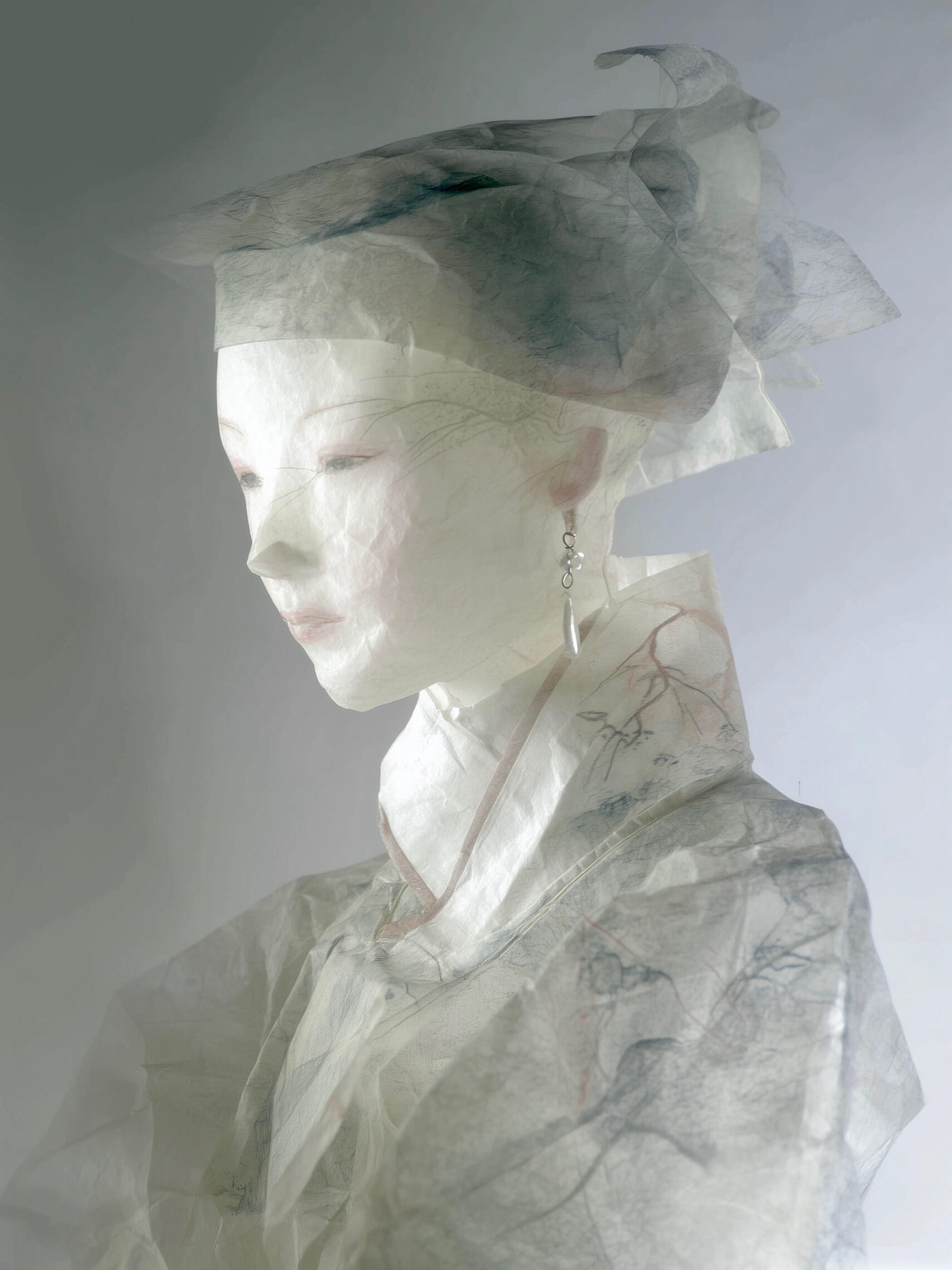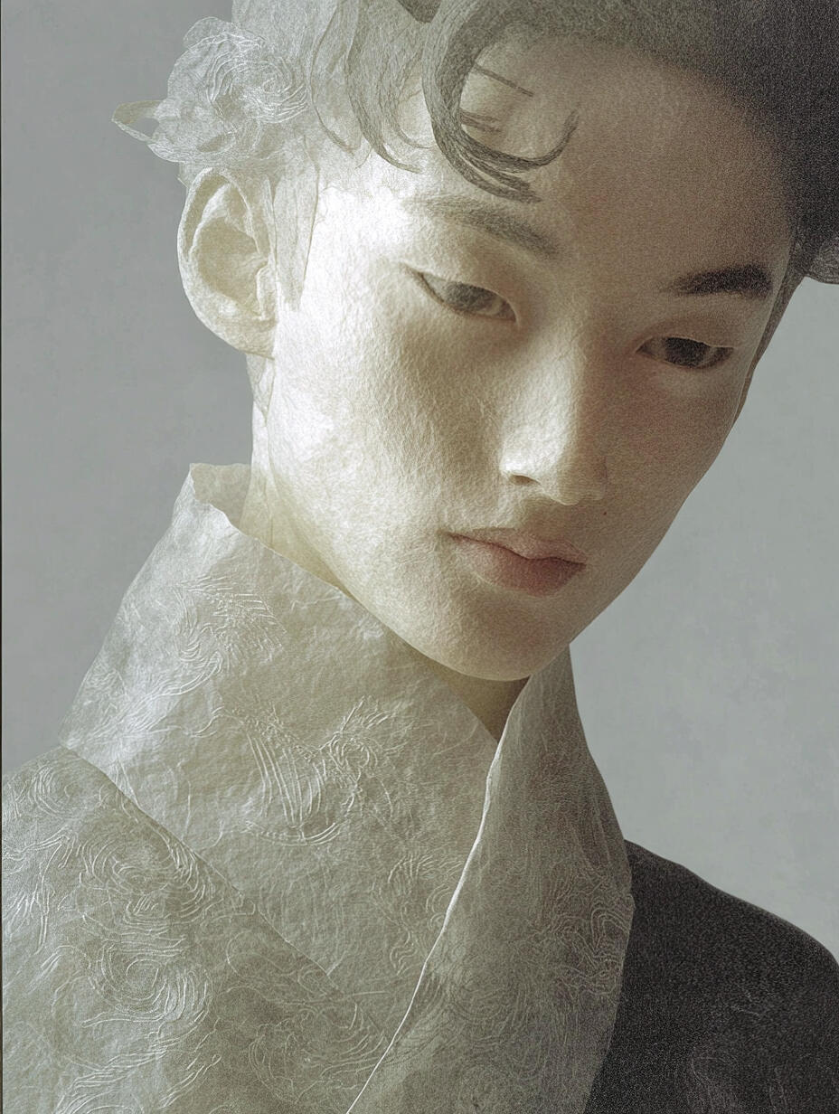 Plain paper is cut into Song-style robes, each fold concealing the passage of time. Cloud-like hairpins entwine a dream of a thousand years, while flowing sleeves trail mist and fragrance of the ancients.