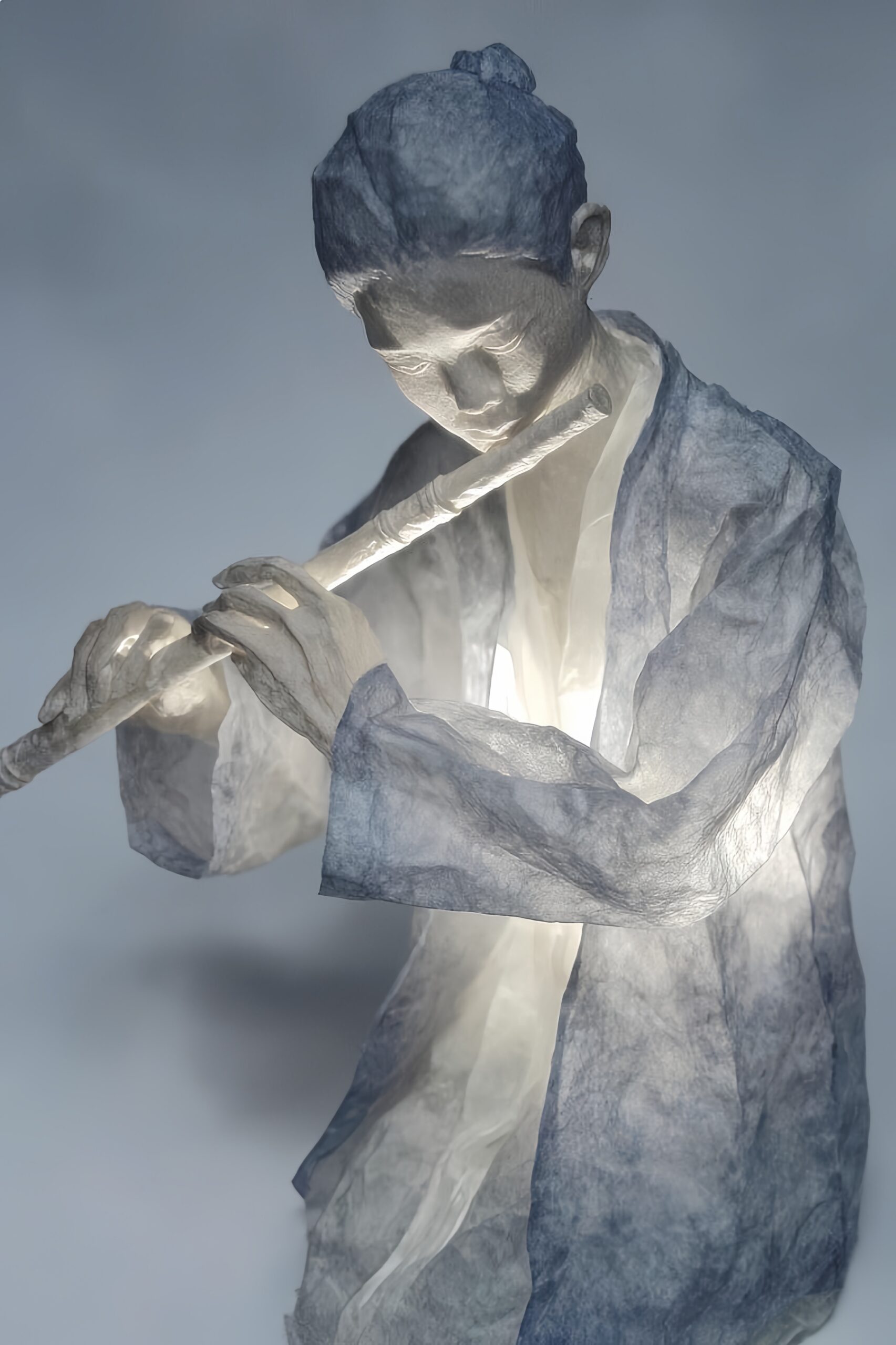 This experimental work transforms traditional Chinese ink-line figures from two-dimensional paintings into translucent three-dimensional sculptures made of xuan paper. Inspired by the notion of “bringing life” in Chinese art, it explores how generative AI can extend the painterly imagination into spatial form—where figures seem to step beyond the picture plane and inhabit reality. As a visual experiment, it reflects both the poetic vitality of tradition and the speculative potential of contemporary technology.