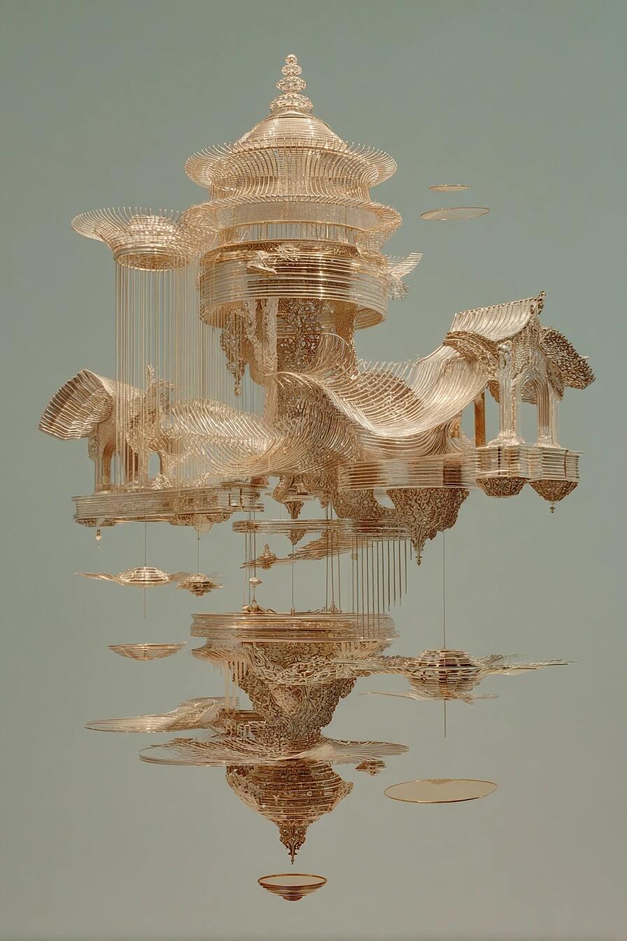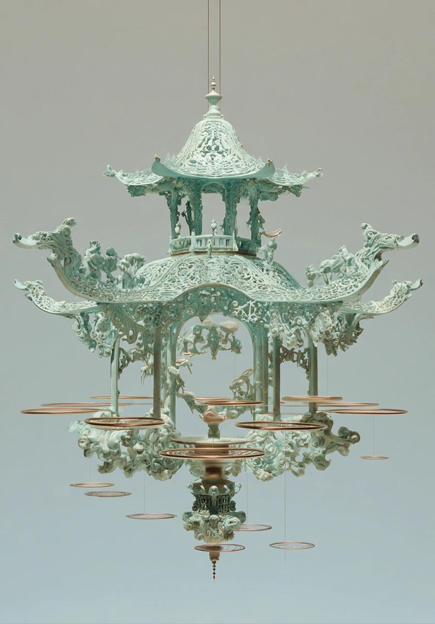 Suspended Dreams reimagine bronze and metal materials as light, porous, and suspended. This series explores what physical craft cannot achieve: heavy matter transformed into air. These skeletal, hovering forms are studies in structure, reflecting on the tension between density and levitation, material and dream.
